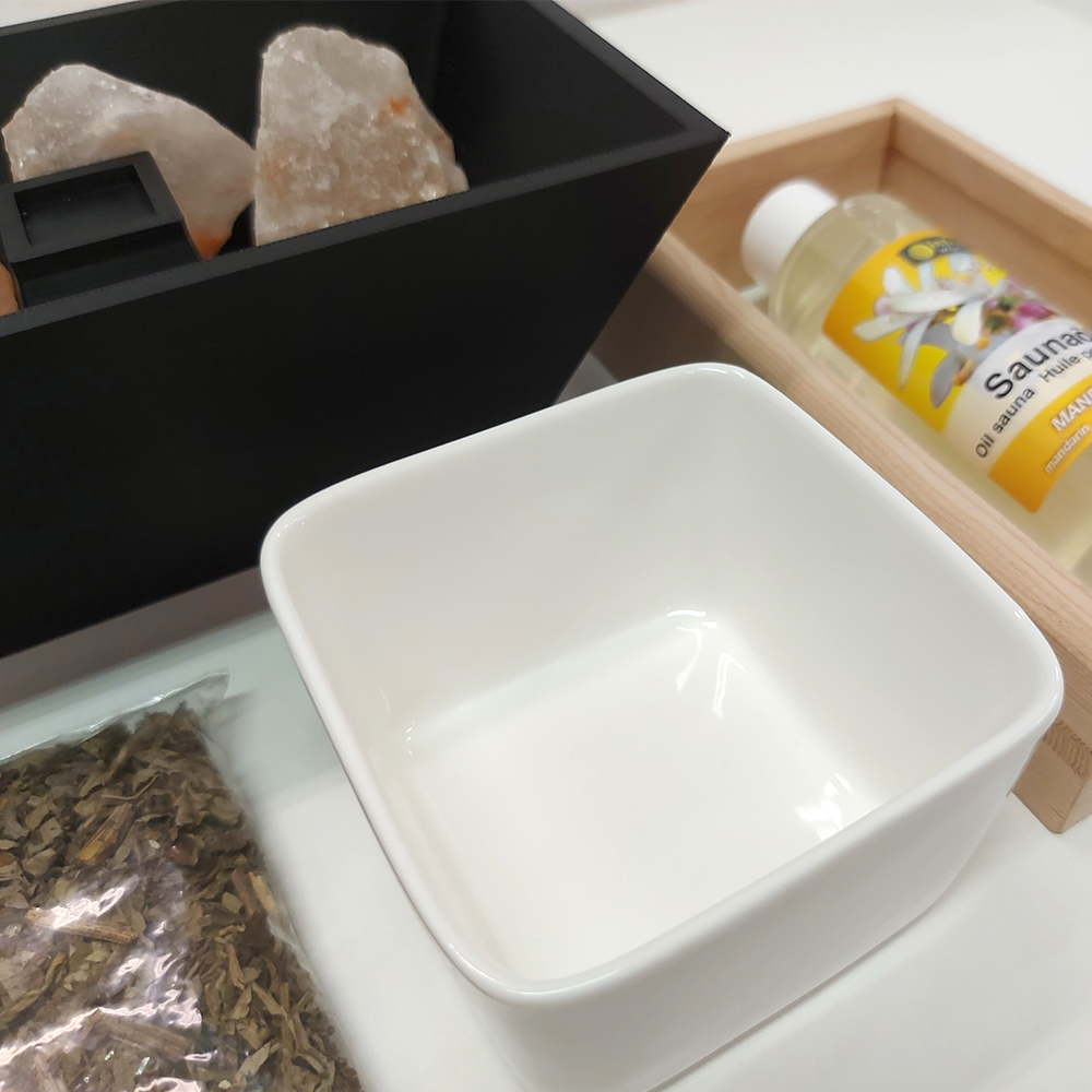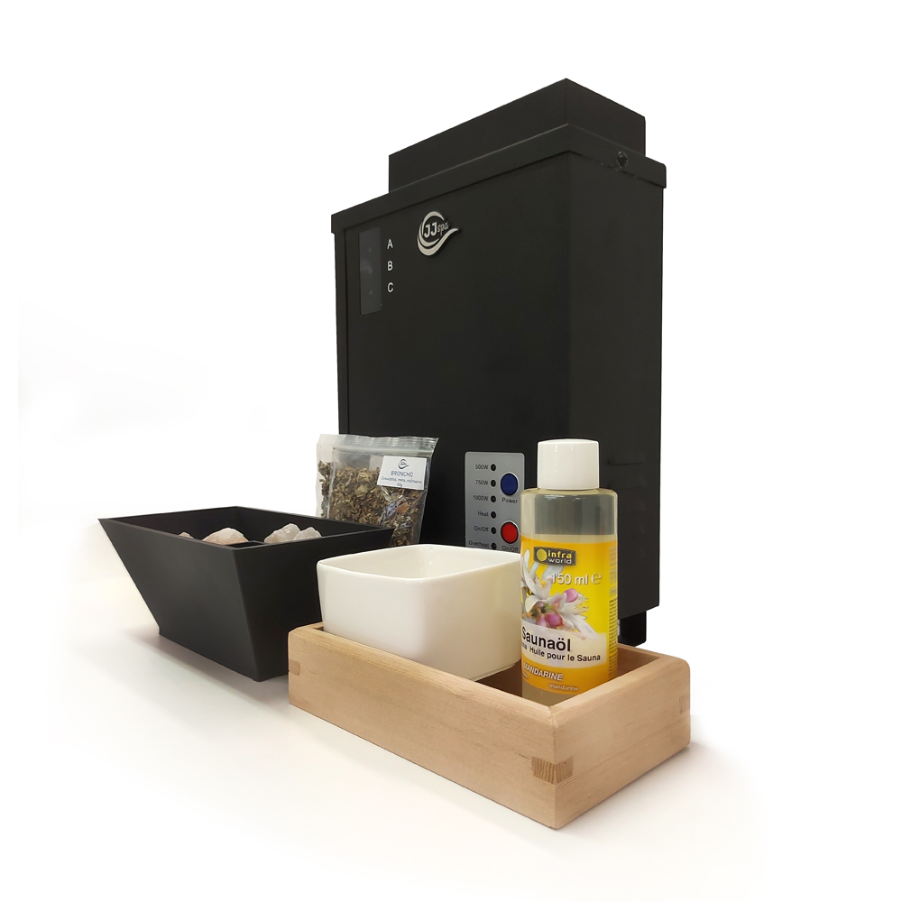 JJSPA BIOSET2 – Bio salt vaporizer set is mainly used in infrared saunas, where there is no other source to increase air humidity. It can also be used in traditional saunas, as the salt vaporizer makes it possible to experience even more beneficial effects of sauna therapy with natural oils and herbs.